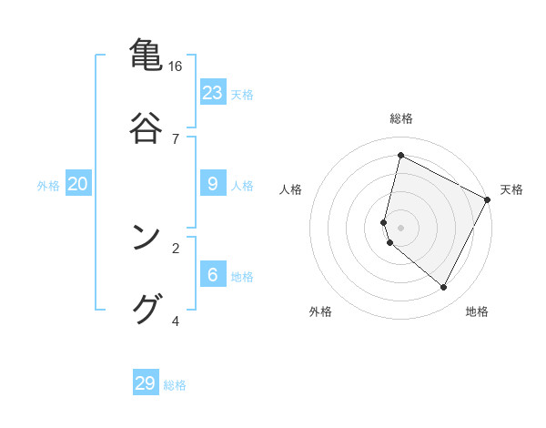 亀谷 ングさんの総格は29画の4点!