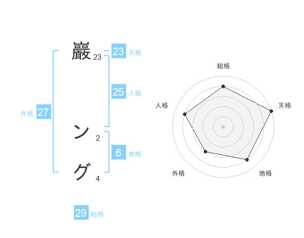 巖 ングさんの天格は23画の5点!