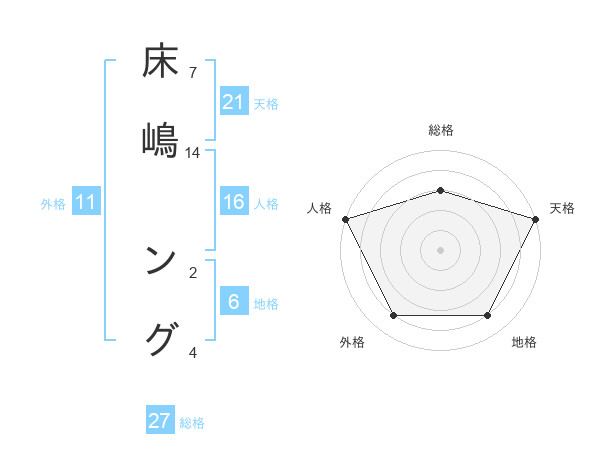 床嶋 ングさんを姓名の画数から五運を鑑定