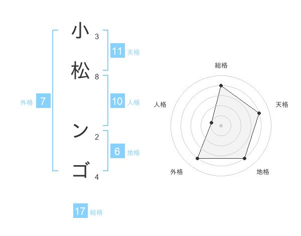 小松 ンゴさんの天格は11画の4点!