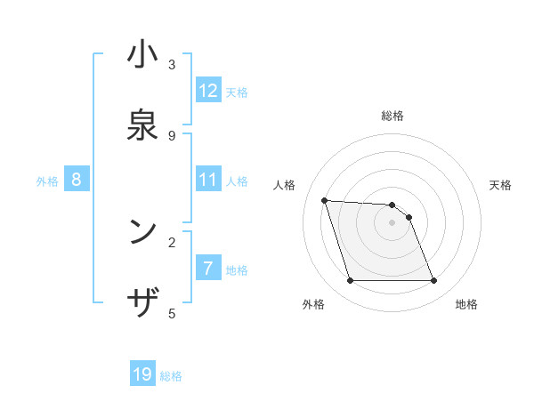 小泉 ンザさんの総格は19画の1点!