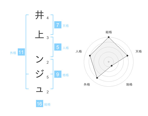 井上 ンジュさんの外格は11画の4点