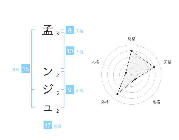 孟 ンジュさんを姓名の画数から五運を鑑定