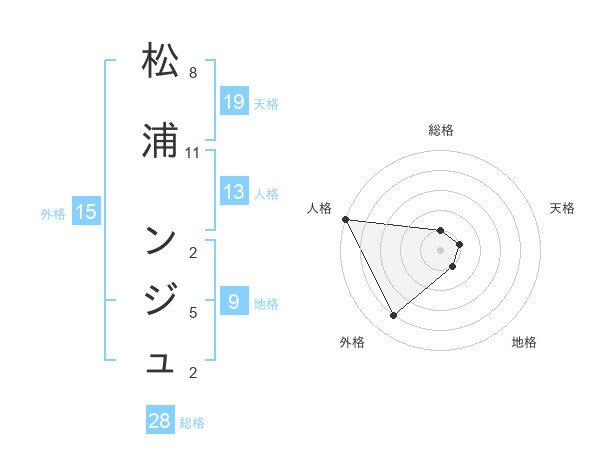 松浦 ンジュさんの総格は28画の1点!