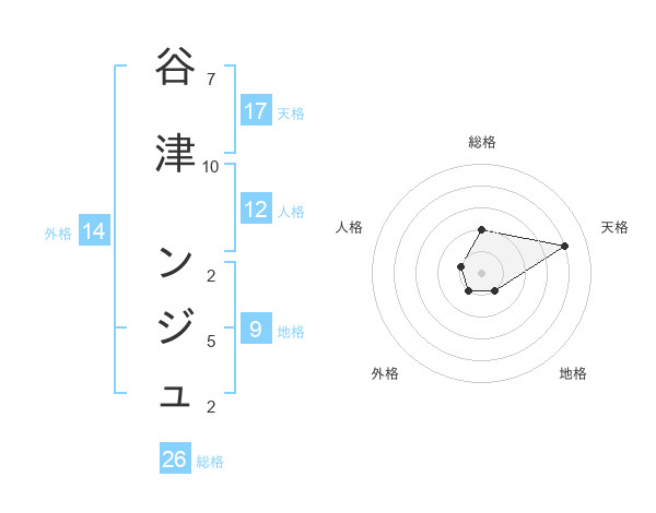 谷津 ンジュさんを姓名の画数から五運を鑑定