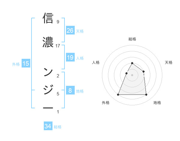 信濃 ンジーさんの総格は34画の2点!