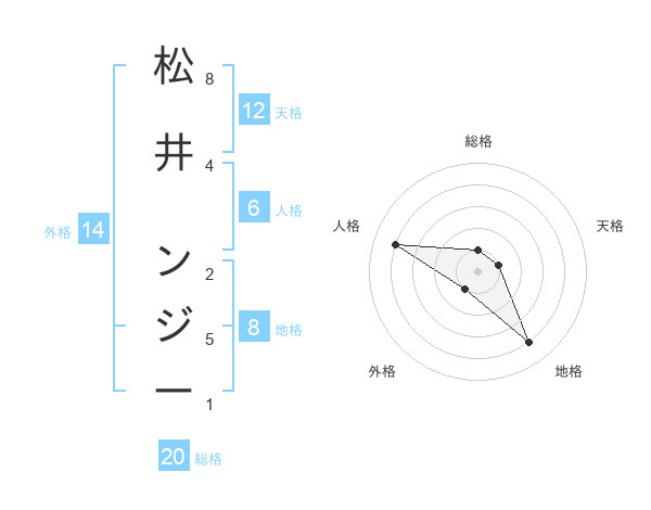 松井 ンジーさんを姓名の画数から五運を鑑定