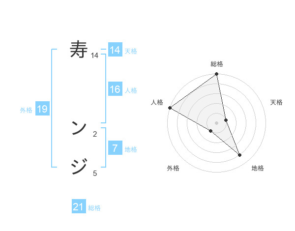 寿 ンジさんの総格は21画の5点!
