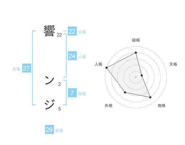 響 ンジさんの総格は29画の4点!