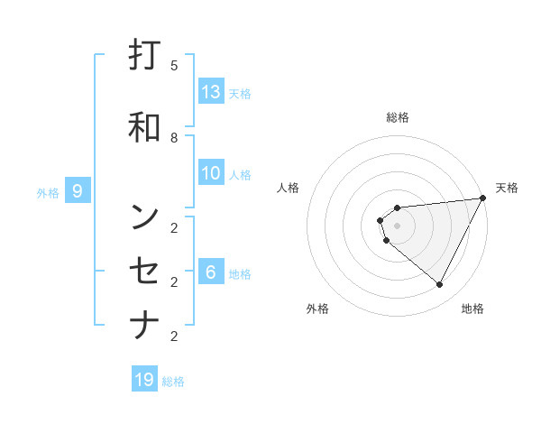打和 ンセナさんを姓名の画数から五運を鑑定