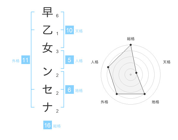 早乙女 ンセナさんを姓名の画数から五運を鑑定