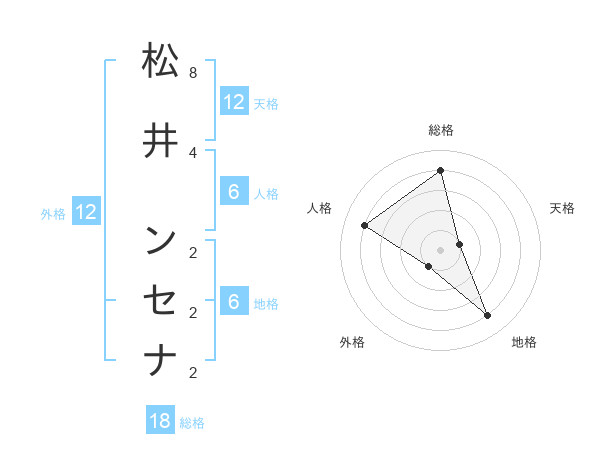 松井 ンセナさんを姓名の画数から五運を鑑定