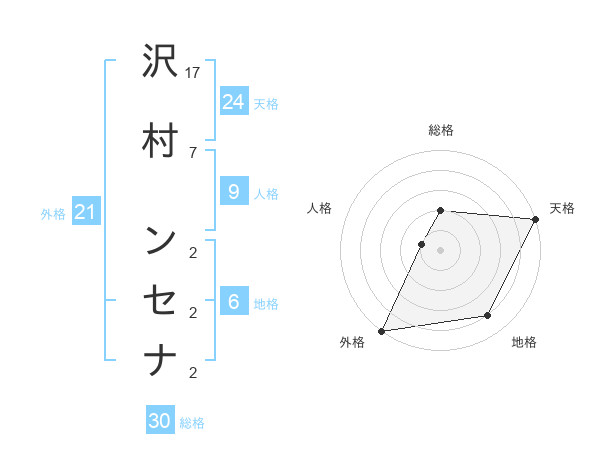 沢村 ンセナさんを姓名の画数から五運を鑑定