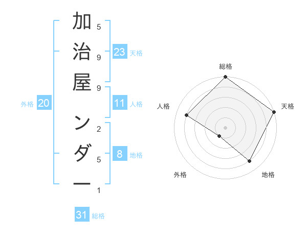 加治屋 ンダーさんを姓名の画数から五運を鑑定