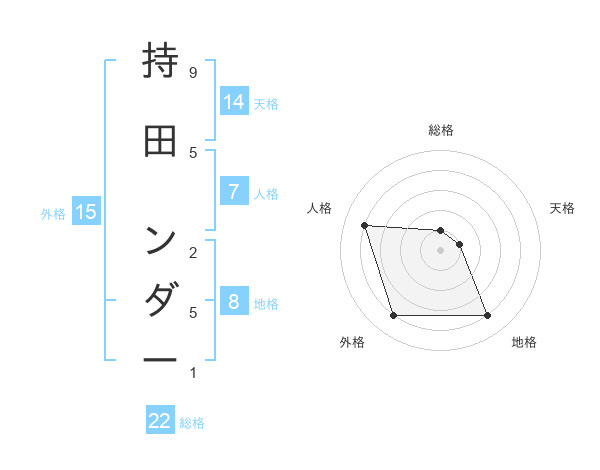 持田 ンダーさんの総格は22画の1点!