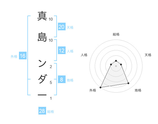真島 ンダーさんの外格は16画の5点!