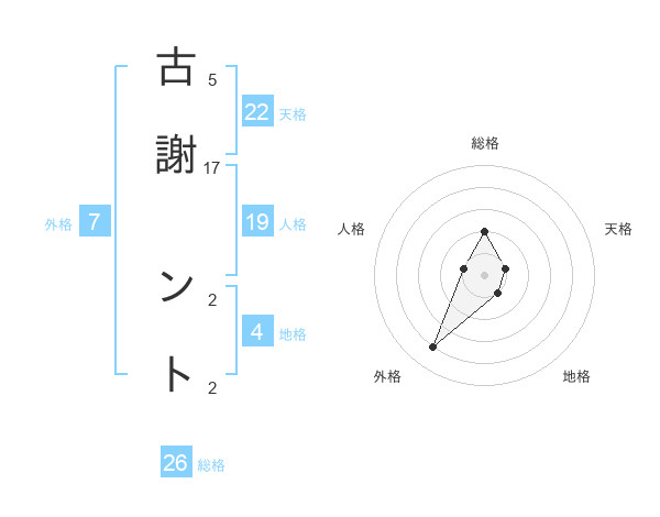 古謝 ントさんの総格は26画の2点!