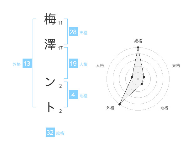 梅澤 ントさんの外格は13画の5点!