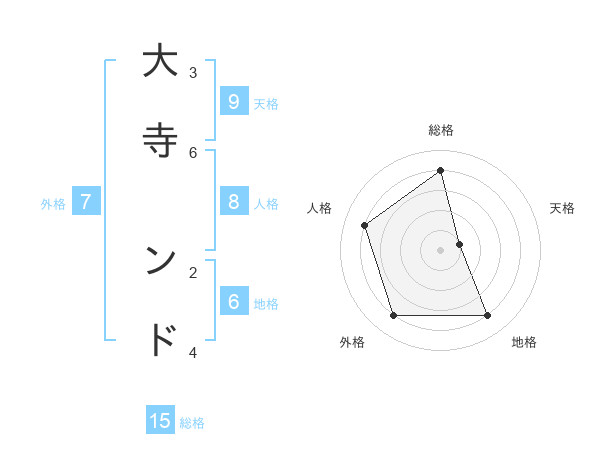 大寺 ンドさんの総格は15画の4点!