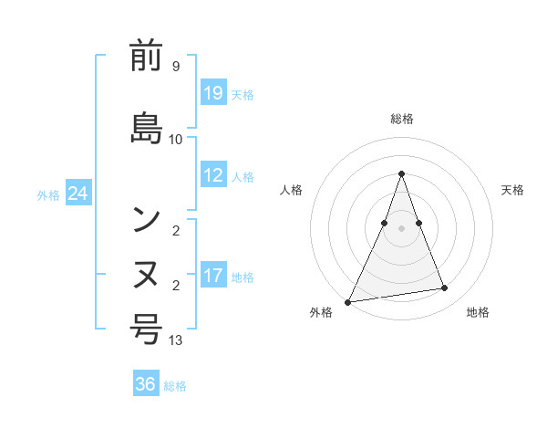 前島 ンヌ号さんを姓名の画数から五運を鑑定