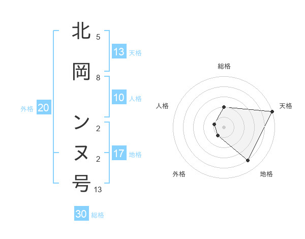 北岡 ンヌ号さんを姓名の画数から五運を鑑定