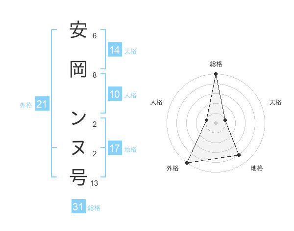 安岡 ンヌ号さんの総格は31画の5点!