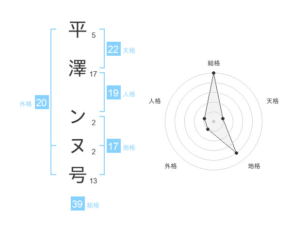 平澤 ンヌ号さんを姓名の画数から五運を鑑定