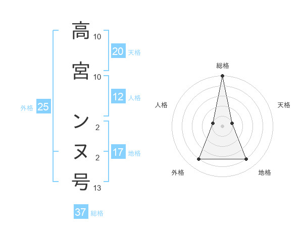 高宮 ンヌ号さんを姓名の画数から五運を鑑定