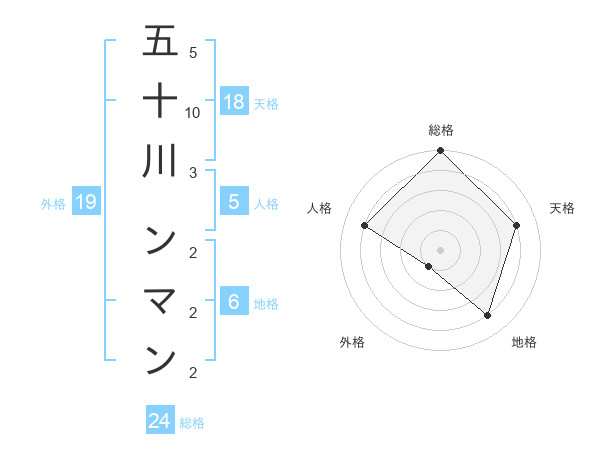 五十川 ンマンさんを姓名の画数から五運を鑑定