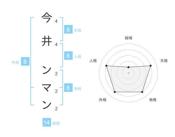 今井 ンマンさんを姓名の画数から五運を鑑定