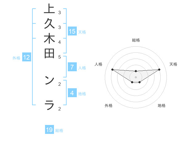 上久木田 ンラさんの総格は19画の1点!