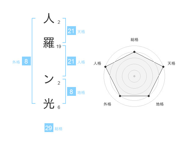 人羅 ン光さんの天格は21画の5点!