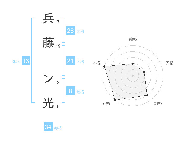 兵藤 ン光さんを姓名の画数から五運を鑑定