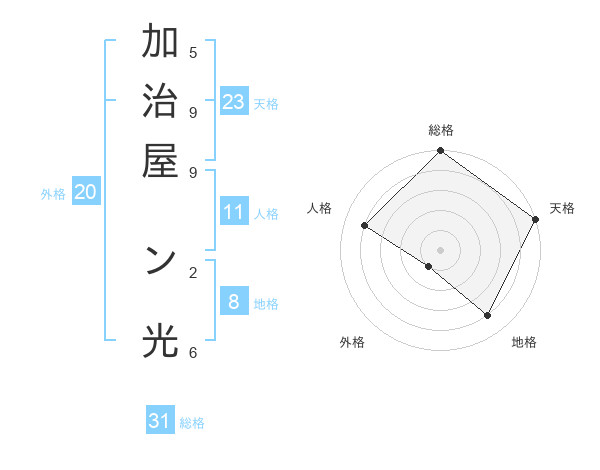加治屋 ン光さんを姓名の画数から五運を鑑定