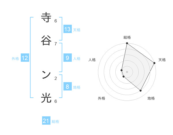 寺谷 ン光さんの総格は21画の5点!