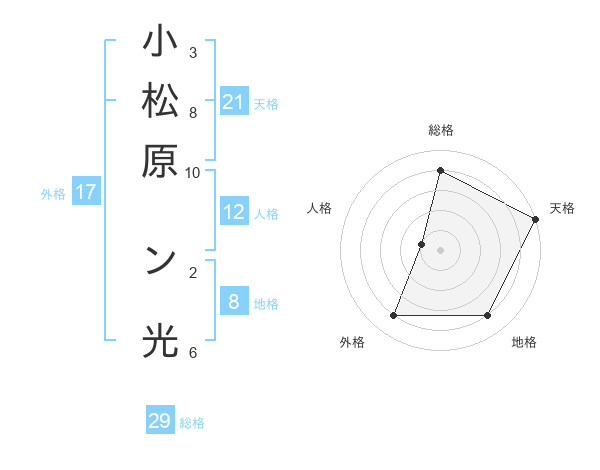 小松原 ン光さんの総格は29画の4点!