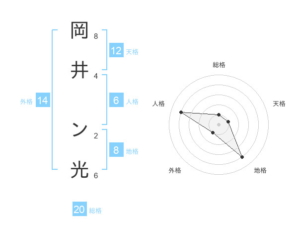 岡井 ン光さんの総格は20画の1点!