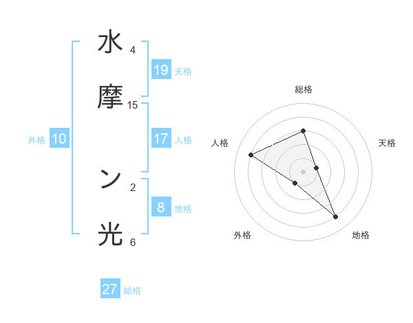 水摩 ン光さんを姓名の画数から五運を鑑定
