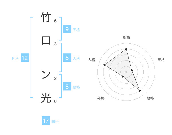 竹口 ン光さんの総格は17画の4点!