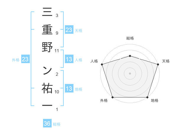 三重野 ン祐一さんの地格は13画の5点!