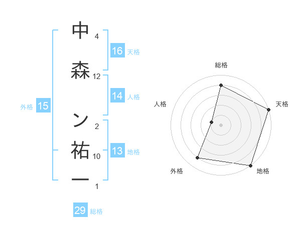 中森 ン祐一さんの総格は29画の4点!
