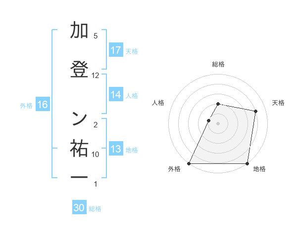 加登 ン祐一さんを姓名の画数から五運を鑑定