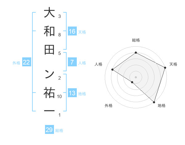 大和田 ン祐一さんの総格は29画の4点!