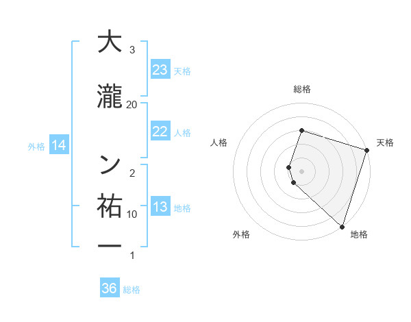 大瀧 ン祐一さんの天格は23画の5点!