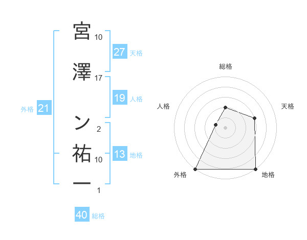 宮澤 ン祐一さんを姓名の画数から五運を鑑定