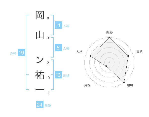 岡山 ン祐一さんを姓名の画数から五運を鑑定