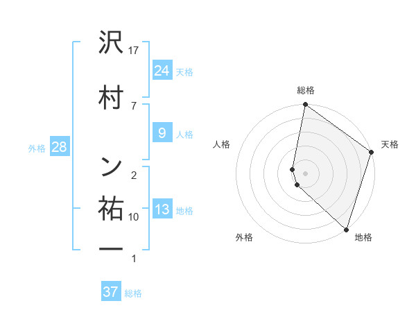 沢村 ン祐一さんを姓名の画数から五運を鑑定
