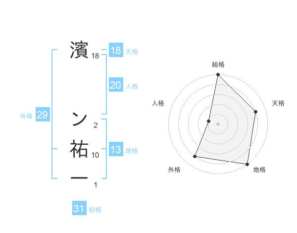 濱 ン祐一さんの総格は31画の5点