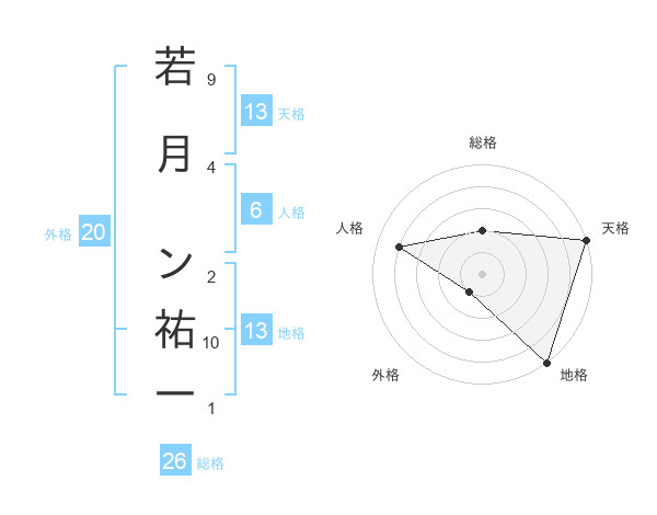若月 ン祐一さんを姓名の画数から五運を鑑定