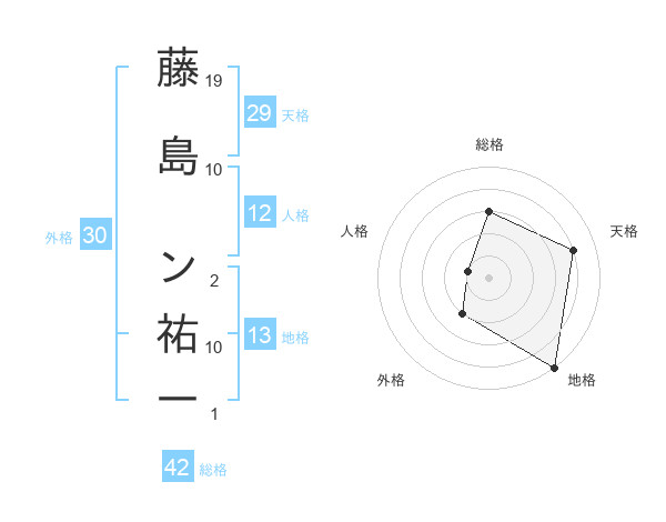 藤島 ン祐一さんを姓名の画数から五運を鑑定